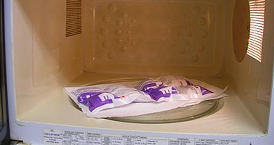 "Mételo de uno a cinco minutos en un horno microondas según la potencia, o agrega más tiempo si se requiere de mayores temperaturas."